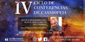 Find out more »El Ciclo de Conferencias de Cassiopeia comienza su cuarto año con nuevas ponencias sobre temas actuales en el mundo astronómico como el new space y las posibles salidas para el alumnado egresado de física o temas que nunca pasan de moda como la evolución continua del Cosmos. Cualquier persona interesada en las maravillas del universo...