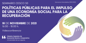 Find out more »Actividad de Extensión Universitaria organizada por la Cátedra Cajasiete de Economía Social y Cooperativa dentro del marco de «Seminarios Intercátedras 2021/2022». Esta edición está centrada en las Políticas Públicas que desde la Administración Central se llevarán a cabo en los años venideros. Para ello, hemos organizado una sesión en la que intervendrá Maravillas Espín Sáez, Directora...