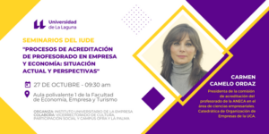 Find out more »Seminario de Extensión Universitaria organizado por el Instituto Universitario de la Empresa (IUDE) de la Universidad de La Laguna, que se celebrará en la Facultad de Economía, Empresa y Turismo el 27 de octubre de 2022, en horario de 9:30 a 11:30 horas. Como es sabido, el Programa ACADEMIA de la Agencia Nacional de Evaluación...