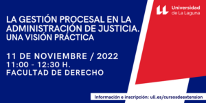 Find out more »Actividad de Extensión Universitaria dirigida al alumnado de la asignatura de Derecho Procesal I de tercero del Grado de Derecho, que se celebrará en la Facultad de Derecho el 11 de noviembre de 2022 de 11:00 a 12:30 horas. El objetivo de la actividad formativa es la explicación de las funciones del personal no jurisdiccional...