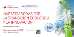 Find out more »El jueves 24 de noviembre a las 12:00 h tendrá lugar el tercero de los seminarios de «Investigadoras por la Transición Ecológica y la Innovación» organizados por la Cátedra Fundación Cepsa. El título del seminario es «Hidrógeno verde y movilidad eléctrica» y será impartido por Erika Teliz, profesora de la Facultad de Ingeniería y de la...
