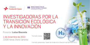 Find out more »El jueves 1 de diciembre a las 13:00 h tendrá lugar el cuarto de los seminarios de «Investigadoras por la Transición Ecológica y la Innovación» organizados por la Cátedra Fundación Cepsa. El título del seminario es «Microalgae pioneering the future» y será impartido por Luisa Gouveia, investigadora del Laboratorio Nacional de Energía y Geología de...