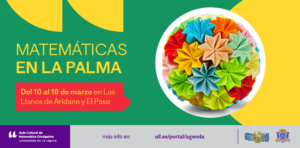Find out more »La Real Academia Canarias de Ciencias organiza junto con el Ayuntamiento de los Llanos de Aridane y el Aula Cultural Matemática Divulgativa de la Universidad de La Laguna una serie de actividades con motivo del Día Internacional de Las Matemáticas. Exposición “Doblamos las Matemáticas”, Casa de la Cultura de Los Llanos de Aridane del 11...
