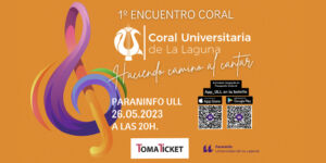Find out more »El 26 de mayo a las 20:0 horas se celebra en el Paraninfo Universitario la primera edición del Encuentro Coral organizado por la Coral Universitaria de La Laguna, que contará con la participación de reconocidos grupos del panorama coral insular. Entradas: 8 €.