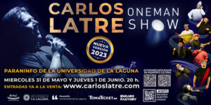Find out more »Carlos Latre vuelve a los escenarios… ¡y lo hace a lo grande! ONE MAN SHOW es un repaso a toda la actualidad del país. La política, sociedad, cultura, deporte, televisión, modas, tendencias, Internet, la pandemia y el Covid… ¡TODO EN UN ESPECTÁCULO ÚNICO! 90 minutos de personajes, imitaciones, sketches, canciones, parodias y el mejor humor LATRE....
