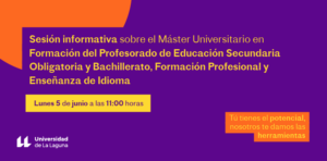 Find out more »La Escuela de Doctorado y Estudios de Posgrado de la Universidad de La Laguna organiza el lunes 5 de junio a las 11:0 h una sesión informativa sobre el Máster Universitario en Formación del Profesorado de Educación Secundaria Obligatoria y Bachillerato, Formación Profesional y Enseñanza de Idioma de forma online. Para más información, pulse este...