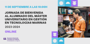 Find out more »El próximo día 11 de septiembre a las 10:00 horas tendrán lugar las Jornadas de Bienvenida al alumnado del Máster Universitario en Gestión en Tecnologías Marinas 2023-2024. Para seguir esta jornada, pulse este enlace. La Jornada de Bienvenida se ha grabado, para poder verla, pulse este enlace.