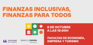 Find out more »El viernes 6 de octubre bajo el lema “Finanzas Inclusivas, Finanzas para Todos”, el Banco de España celebrará el "Día de la Educación Financiera". El evento se desarrollará a las 10:00 h en la Facultad de Economía, Empresa y Turismo de la Universidad de La Laguna en coordinación con el Instituto Universitario de la Empresa...