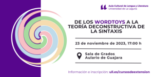 Find out more »El Aula Cultural de Lengua y Literatura organiza este evento que se celebrará en el Aulario de Guajara el 23 de noviembre de 2023 a las 17:00 horas. Objetivos: Acercar la literatura digital y la escritura transmedial que se está trabajando fundamentalmente en Latinoamérica al alumnado y público general interesado en conocer las nuevas tendencias...