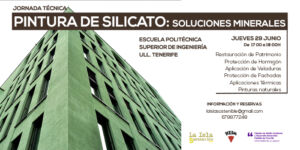 Find out more »Jornada técnica sobre los usos y aplicaciones del silicato potásico en la bioconstrucción, restauración de patrimonio y protección de fachadas y hormigones vistos. Una charla de dos horas de duración en el Salón de Actos de la Escuela Politécnica Superior de Ingeniería de la Universidad de La Laguna, de técnicos especialistas en pinturas de silicato del fabricante KEIM, pionero e inventor de este tipo de pinturas minerales. Hablaremos sobre los diferentes tipos de soportes, aplicación del silicato potásico en los…