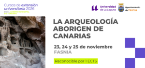 Fasnia acoge el curso «La arqueología aborigen de Canarias», organizado conjuntamente por el Vicerrectorado de Cultura y Extensión Universitaria y el Ayuntamiento de Fasnia, dentro de la programación de los Cursos de Extensión Universitaria en el ámbito municipal “Ayuntamientos 2026”, que se celebrará los días 23, 24 y 25 de noviembre de 2026. Objetivos: - Dotar al alumnado de unas bases en lo relativo al conocimiento que disponemos actualmente del modo de vida de las poblaciones aborígenes de Canarias. - Dar a…