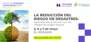 El Rosario acoge el curso «La reducción del riesgo de desastres. Aprendiendo a convivir con los riesgos de origen natural», organizado conjuntamente por el Vicerrectorado de Cultura y Extensión Universitaria y el Ayuntamiento de El Rosario, dentro de la programación de los Cursos de Extensión Universitaria en el ámbito municipal “Ayuntamientos 2026”, que se celebrará los días 5, 6 y 7 de mayo de 2026. Objetivos: - Comprender los conceptos fundamentales de riesgo, vulnerabilidad, exposición y resiliencia en el contexto del cambio…