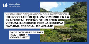 El Aula Cultural de Divulgación Científica organiza este seminario que se celebrará en modalidad online el 8 de diciembre de 2025 de 16:30 a 18:30 horas. Este seminario explora el potencial de la narrativa transmedia y la realidad virtual para la interpretación del patrimonio biocultural en espacios naturales protegidos. Se presenta el diseño de un tour virtual en 360° en la Reserva Especial del Barranco de Azuaje, que integra elementos interactivos y narrativas innovadoras para promover la conexión con el…