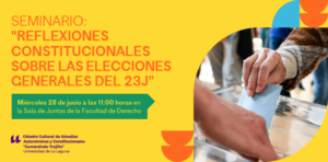 Find out more »El 28 de junio a las 11:00 horas tendrá lugar la IV Sesión del Seminario Permanente Gumersindo Trujillo, con el título “Reflexiones constitucionales sobre las elecciones generales del 23J”. La sesión será impartida por los doctores Antonio Domínguez Vila, Vicente Navarro Marchante, Gerardo Pérez Sánchez, José Ignacio Navarro Méndez y Daniel López Rubio y tendrá...