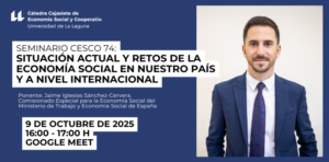 Find out more »La Cátedra Cajasiete de Economía Social y Cooperativa (CESCO) organiza este seminario que se celebrará en modalidad online el 9 de octubre de 2025, en horario de 16:00 a 17:00 horas. Esta conferencia abordará los avances que ha vivido la economía social y solidaria en España y a nivel global en los últimos años, así...