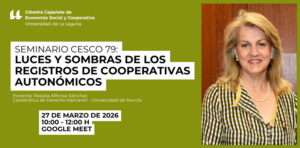La Cátedra Cajasiete de Economía Social y Cooperativa (CESCO) organiza este seminario que se celebrará en modalidad online el 27 de marzo de 2026, en horario de 10:00 a 12:00 horas. El seminario ofrece un estudio sistemático y crítico del régimen jurídico aplicable a los registros de sociedades cooperativas en el ámbito autonómico español. Partiendo del análisis del proceso de desvinculación de las sociedades cooperativas del Registro Mercantil, se aborda la delimitación de la naturaleza jurídica de estos registros, con…