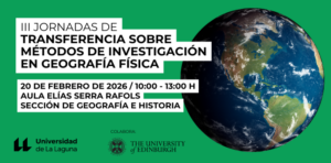 La Cátedra Cultural Reducción del Riesgo de Desastres y Ciudades Resilientes, con la colaboración de The University of Edinburgh, en el marco del Proyecto IMPLACOST (1/MAC/2/2.4/0009), organizan estas jornadas que se celebrarán en el edificio de la Sección de Geografía e Historia el 20 de febrero de 2026 de 10:00 a 13:00 horas. El objetivo de las jornadas es aproximarnos a las principales técnicas de investigación dentro de la Geografía Física, haciendo especial incidencia en aquellas aplicadas dentro del ámbito de…