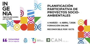 Formación promovida por el programa INGENIA, el cual es coordinado por la Fundación General de La Universidad de La Laguna en colaboración con el Área de Empleo, Educación y Juventud del Cabildo Insular de Tenerife. Objetivos del curso: Identificar las etapas clave en la elaboración de proyectos socio-ambientales desde un enfoque participativo. Aplicar herramientas de diagnóstico colaborativo en contextos comunitarios. Incorporar la perspectiva de género en la planificación de proyectos sociales y ambientales. Diseñar indicadores para la evaluación participativa de proyectos.…