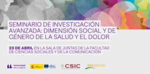 Find out more »El Seminario de Investigación Avanzada: Dimensión social y de género de la salud y el dolor, dirigido por Esther Torrado Martín-Palomino y Josué Gutiérrez Barroso, se configura como un espacio de reflexión interdisciplinar dedicado al análisis de la influencia de los factores sociales, culturales y de género en la experiencia, percepción y tratamiento del dolor. Tendrá lugar el 23 de abril de 2026 a partir de las 16:00 horas en la Sala de Juntas de la Facultad de Ciencias Sociales…