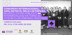 El Departamento de Filología Española de la Universidad de La Laguna, en colaboración con el Aula de Lengua y Literatura, el Aula de Artes Escénicas, la Universitat Autònoma de Barcelona y la Universidad Complutense de Madrid, organiza el Congreso Internacional "Adelantar el reloj de España". Mujeres, esfera pública e intermedialidad en torno al Lyceum Club Femenino (1926-2026). Este encuentro académico se celebrará en el Campus Guajara entre el 15 y el 17 de abril de 2026. El objetivo de este…
