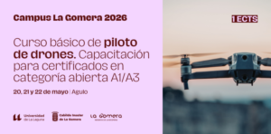 Agulo acoge el curso de Extensión Universitaria «Curso básico de piloto de drones. Capacitación para certificados en categoría abierta A1/A3», que se celebrará los días 20, 21 y 22 de mayo, en el marco del “Campus La Gomera 2026”. Objetivos: Adquisición de conocimientos necesarios para afrontar con garantías los exámenes online conducentes a la obtención de los certificados de vuelo en categoría abierta A1/A3. Adquisición de experiencia básica en el manejo de un dron, tanto en interior como en exterior.…