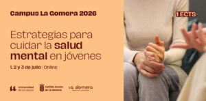 El curso «Estrategias para cuidar la salud mental en jóvenes» forma parte de la programación de los Cursos de Extensión Universitaria “Campus La Gomera 2026”. El mismo se celebrará en modalidad online los días 1, 2 y 3 de julio. Objetivos: 1.- Capacitar a los participantes en la identificación de problemas de salud mental en la infancia y la adolescencia. 2.- Generar un foro de diálogo acerca de la salud mental desde una perspectiva interdisciplinar. 3.- Identificar señales de alarma en salud…