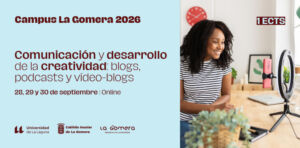 El curso «Comunicación y desarrollo de la creatividad: blogs, podcasts y vídeo-blogs» forma parte de la programación de los Cursos de Extensión Universitaria “Campus La Gomera 2026”. El mismo se celebrará en modalidad online los días 28, 29 y 30 de septiembre. Objetivos: - Dotar al alumnado de unas bases sólidas para la preparación, creación y gestión de contenidos en formatos de texto (bitácoras o blogs), de audio (pódcast) o audiovisual (video-bitácoras o videoblogs). - Dar al alumnado nociones generales de comunicación…