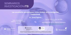 El programa de Seminarios de Investigación ITB 2026 continúa el jueves día 12 de febrero a las 13:00 h con un seminario del Dr. Josep Dalmau, que impartirá la charla "Las encefalitis autoinmunes como modelo de investigación traslacional". Josep Dalmau es neurólogo experto en neurooncología, síndromes paraneoplásicos y encefalitis autoinmunes. Dirige el grupo de Neuroinmunología Clínica y Experimental en Encefalitis Autoinmunes del Instituto de Investigación Biomédica August Pi i Sunyer (IDIBAPS) en el Hospital Clínic y la Universitat de Barcelona,…