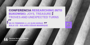 Find out more »El profesor e investigador, Abel Debritto, impartirá la conferencia titulada, “Researching Into Bukowski: Joys, Treasure Troves, and Unexpected Turns”, que es resultado de su estancia en diversas bibliotecas insititucionales y consulta en bibliotecas privadas, incluyendo la propia de Charles Bukowsli en San Pedro (California). Como resultado de sus investigaciones, Debritto se centrará en la traducción que ha realizado de los muchos de textos que ha recopilado eventualmente en un completo catálogo de la dispersa producción literaria de ese autor norteamericano.…