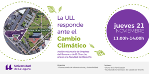 El próximo jueves 21 de noviembre la Universidad de La Laguna llevará a cabo una iniciativa que contempla el desarrollo de varias acciones para contribuir a contrarrestar el cambio climático desde la perspectiva local. Esta actividad, alineada con los Objetivos de Desarrollo Sostenible, está organizada por el Vicerrectorado de Infraestructuras y Sostenibilidad en colaboración con Oficina de la Participación y el Voluntariado Ambientales del Cabildo de Tenerife. Todas aquellas personas de la comunidad universitaria que deseen participar deberán inscribirse accediendo…