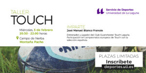 El Servicio de Deportes de la ULL oferta en el segundo trimestre el taller gratuito de Touch. El mismo es un deporte de equipo mixto, similar al rugby, pero implicando el menor contacto posible y sin permitirse las patadas, donde se trata de posar el balón en la zona de marca del equipo contrario evitando que nos marquen. Con este deporte se desarrolla la agilidad, destreza y potencia, además de fomentar los valores como el respeto al equipo contrario, al…