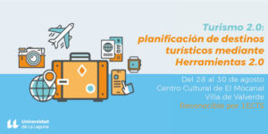 Curso organizado por el Vicerrectorado de Cultura, Participación Social y Campus Ofra y La Palma y el Cabildo Insular de El Hierro, dentro de la programación de la convocatoria de Cursos de Extensión Universitaria “Universidades Insulares de Verano 2018”. Objetivos: - Entender el rol de los medios sociales en los procesos de comunicación y marketing del sector turístico. - Conocer, mediante la práctica, los principales recursos de medios sociales que más interesan al turismo. - Dar a los alumnos las…