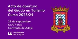 El convento franciscano de Adeje acogerá el jueves 28 de septiembre a partir de las 12:00 horas, el Solemne Acto de Apertura del Grado en Turismo 2023/24 en el Campus Universitario del Sur. La ceremonia estará presidida por el rector de la institución académica, Francisco García Rodríguez, acompañado por el alcalde de Adeje, José Miguel Rodríguez Fraga. La lección inaugural correrá a cargo de Moisés Simancas Cruz, catedrático de Geografía Humana de la Universidad de La Laguna, titulada: “¿Es necesario…