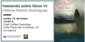 Sexta edición de la tertulia bibliográfica organizada junto al Craft Coffee Gastrobar y la asociación cultural de relaciones internacionales «Hacer para el Desarrollo». En esta ocasión, tendremos la presencia de la escritora Fátima Martín Rodríguez, que hablará de su obra «El ángulo de la bruma». Esta novela ha sido galardonada en la XXIX Edición del Premio «Gonzalo Torrente Ballester» de literatura en lengua española.