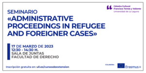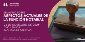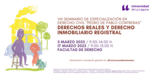 Find out more »Actividad de Extensión Universitaria organizado por el Área de Derecho Civil del Departamento de Disciplinas Jurídicas Básicas con la colaboración de la Cátedra Cultural "Francisco Tomás y Valiente", la Cátedra de Derecho Registral Bienvenido Oliver, el Proyecto Desafíos actuales del Registro de la Propiedad: Blockchain y protección de datos (PID2020-113995GB-I00) y la Facultad de Derecho de la Universidad de La Laguna. El seminario se celebrará los días 3 y 17 de marzo de 2023 en horario de mañana en la…