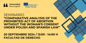 Find out more »La Cátedra Cultural «Francisco Tomás y Valiente» y el Programa Erasmus+ organizan este seminario que se impartirá en la Facultad de Derecho el 20 de septiembre de 2024, en horario de 12:00 a 14:00 horas. The aim of the present seminar is a comparative analysis of the crime of termination of pregnancy without the woman's consent commonly referred to as forced abortion. The discussed crime is located in Chapter XIX of the Polish Penal Code in the Article 153, while…
