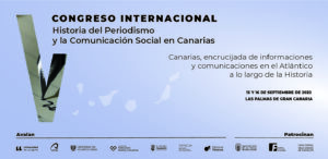 Los días 15 y 16 de septiembre de 2022, en Las Palmas de Gran Canaria, tendrá lugar el V Congreso Internacional "Historia del Periodismo y la Comunicación Social en Canarias". Avalan: Universidad de La Laguna, Universidad de Las Palmas de Gran Canaria, Universidad del Atlántico Medio, Universidad Fernando Pessoa Canarias, El Museo Canario, AsHisCom (la Asociación de Historiadores de la Comunicación) y Ediciones Densura. Patrocinan: Ayuntamiento de Las Palmas de Gran Canaria, Fundación Universitaria de Las Palmas y Casa…