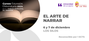 Find out more »Los Silos acoge el curso «El arte de narrar», organizado conjuntamente por el Vicerrectorado de Cultura y Extensión Universitaria y el Ilustre Ayuntamiento de la Villa de Los Silos, dentro de la programación de los Cursos de Extensión Universitaria en el ámbito municipal “Ayuntamientos 2024”, que se celebrará los días 6 y 7 de diciembre de 2024. Objetivos: Conocer los principales recursos vocales y teóricos de la narración oral. Desarrollar el lenguaje verbal y no verbal. Adquirir las técnicas artísticas…