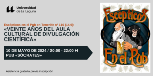 Find out more »El Aula Cultural de Divulgación Científica organiza este seminario que se celebrará en el Pub «Sócrates» el 26 de septiembre de 2025 de 20:00 a 22:00 horas. La actividad pretende exponer los fundamentos de la oratoria y el arte de hablar en público orientadas a la realización de conferencias de carácter divulgativo en el ámbito de iniciativas como el ciclo de conferencias informales Escépticos en el Pub en Tenerife. El encuentro será un seminario teórico-práctico con participación de la audiencia…