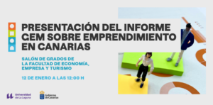Find out more »El Salón de Grados de la Facultad de Economía, Empresa y Turismo de la Universidad de La Laguna acoge el viernes 12 de enero a las 12:00 horas la presentación del Informe GEM sobre emprendimiento en Canarias. Al acto acudirán Francisco García, rector de la Universidad de La Laguna, Isabel León, viceconsejera de Empleo del Gobierno de Canarias y Alexis Oliva, director general de Promoción y Diversificación Económica del Gobierno de Canarias. El estudio ha sido coordinado por dos equipos…