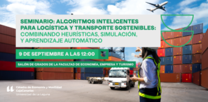 Find out more »La Cátedra de Economía y Movilidad CajaCanarias- Universidad de La Laguna organiza el 9 de septiembre a las 12:00 horas el seminario: "Algoritmos inteligentes para logística y transporte sostenibles: combinando heurísticas, simulación, y aprendizaje automático" en el Salón de Grados de la Facultad de Economía, Empresa y Tursimo. El ponente de este seminario es Ángel A. Juan, catedrático de Estadística e IO en la Universitat Politècnica de València. Ha sido también catedrático en el Departamento de Informática de la Universitat…