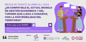 Find out more »En esta mesa de debate se tratará sobre el actual modelo de turismo en Canarias y la sostenibilidad del territorio, además se expondrán algunas propuestas de mejora. Se celebrará de manera presencial, y con acceso virtual. Fecha: Jueves, 16 de Mayo de 2024, a las 19:00h. Organiza: Alumni ULL. Colaboran: Ayuntamiento de La Laguna área de Cultura y Fundación CajaCanarias. Lugar: Sala de Conferencias de la Fundación CajaCanarias, en Santa Cruz de Tenerife. Entrada libre hasta completar aforo. Moderador: Luis…