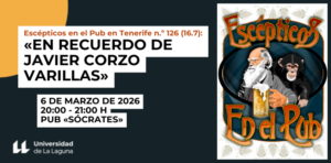 El Aula Cultural de Divulgación Científica organiza este seminario que se celebrará en el Pub «Sócrates» el 6 de marzo de 2026 de 20:00 a 21:00 horas. La actividad pretende recordar la figura de Francisco Javier Corzo Varillas, profesor de la Universidad de La Laguna y divulgador del pensamiento crítico, con motivo del vigésimo aniversario de su fallecimiento. Dirigido a cualquier persona interesada en la temática. Ponente: Javier Corzo Martínez. Dirección académica: Luis Javier Capote Pérez. Profesor Contratado Doctor Tipo…