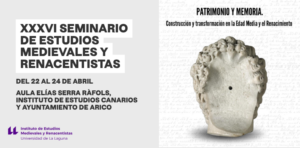 XXXVI Seminario del Instituto de Estudios Medievales y Renacentistas de la Universidad de La Laguna, que en esta ocasión girará en torno al tema "Patrimonio y memoria. Construcción y transformación en la Edad Media y el Renacimiento". Como ya es tradición, el seminario contará con la presencia de especialistas nacionales e internacionales dentro del ámbito del medievalismo y de los estudios renacentistas, contribuyendo al carácter amplio y transversal que ha presentado este evento en sus 36 ediciones.