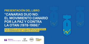 Find out more »Presentación del libro “Canarias dijo No: el movimiento canario por la paz y contra la OTAN (1978-1986)” del historiador Pablo Socorro Arencibia, que tendrá lugar el jueves, 19 de marzo de 2026, a las 18 horas en la Biblioteca General y de Humanidades del Campus de Guajara. La presentación de este libro coincide en el tiempo con la muestra bibliográfica y documental con la que se quiere recordar y contextualizar ese episodio de nuestra historia reciente y que pueden ver…