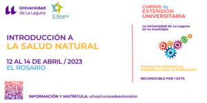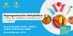 Find out more »El municipio de Arona acoge este curso que forma parte de la oferta de Cursos de Extensión Universitaria «Universidad de Invierno de Arona 2026», que se celebrará los días 28, 29 y 30 de enero de 2026 en horario de 16:00 – 20:00 horas en el Centro Cultural Los Cristianos. Objetivos: Comprender el funcionamiento del metabolismo humano y cómo puede optimizarse mediante la alimentación, el movimiento, el descanso y otros hábitos cotidianos. Identificar y modificar hábitos que afectan negativamente la…