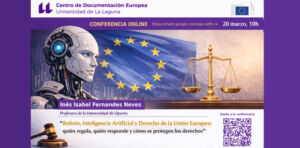 El Centro de Documentación Europea organiza la conferencia "Robots, Inteligencia Artificial y Derecho de la Unión Europea: quién regula, quién responde y cómo se protegen los derechos"dedicada al análisis jurídico de los retos que plantean los robots y la inteligencia artificial en el marco del Derecho de la Unión Europea. La ponente, Inês Isabel Fernandes Neves, profesora de la Universidad de Oporto, abordará cuestiones clave como la regulación de estas tecnologías, la atribución de responsabilidades y la protección de los…