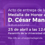 Por tercera vez en su historia, la Universidad de La Laguna concede su más alta distinción, la Medalla de Honor, al artista y activista medioambiental César Manrique, poco después de que se haya celebrado el centenario de esta importante figura de la cultura canaria. El acto, presidido por la Rectora, se celebrará 25 de abril...