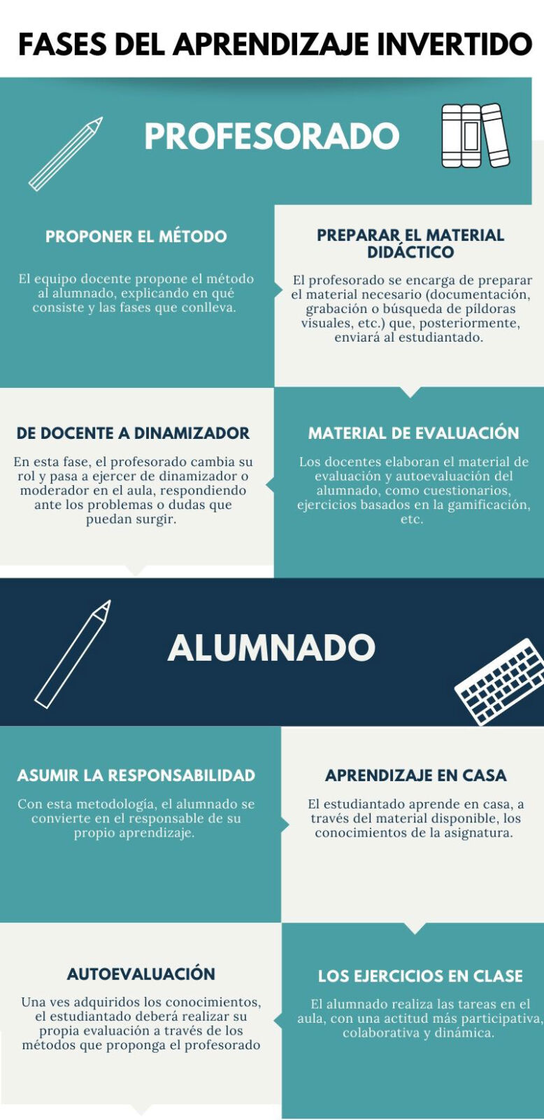 Carolina Real, como impulsora del aprendizaje invertido en su departamento, aclara que el profesorado que quiera aplicarlo debe estar dispuesto a: planificar bien el tiempo en el aula y elegir actividades prácticas; aplicar este método de forma progresiva -empezar por un tema e incluir contenidos a lo largo de los cursos-; disponer del tiempo extra que se necesita invertir en este proceso; apostar por los recursos educativos abiertos y por todas las herramientas que ofrece Internet y las TIC; crear contenidos interactivos e incluir actividades de evaluación y retroalimentación.