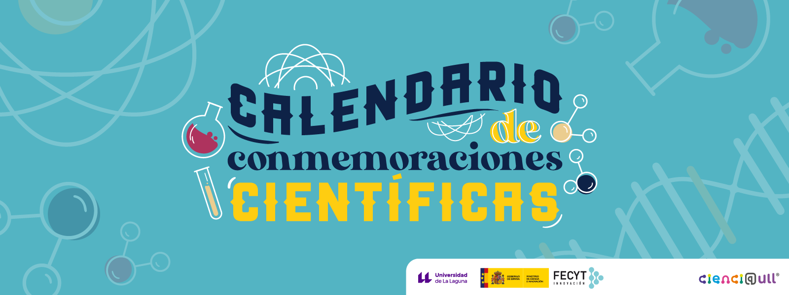 En este calendario de conmemoraciones científicas podrás encontrar eventos científicos actuales, efemérides sobre la vida y obra de figuras científicas y la celebración de años internacionales. Cada día se hace una publicación con las conmemoraciones correspondientes a través de los canales de twitter y facebook de @CienciaULL.